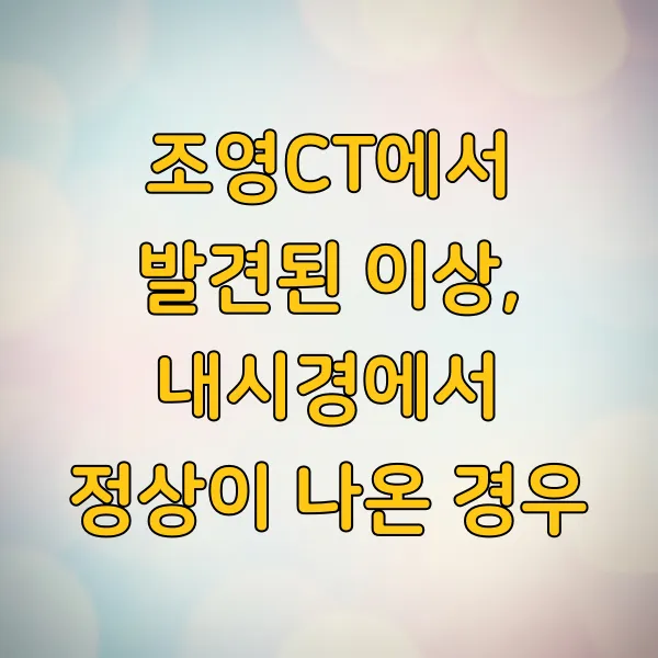 Q2. CT에서 이상, 내시경에서 정상이면 안심해도 되나요? A2. 무조건 안심하기보다는 담당 의사의 종합적인 판단이 중요합니다. CT에서 발견된 이상이 내시경으로 확인하기 어려운 종류거나 부위였을 수 있으며, 경우에 따라 추가 검사가 필요할 수 있습니다.